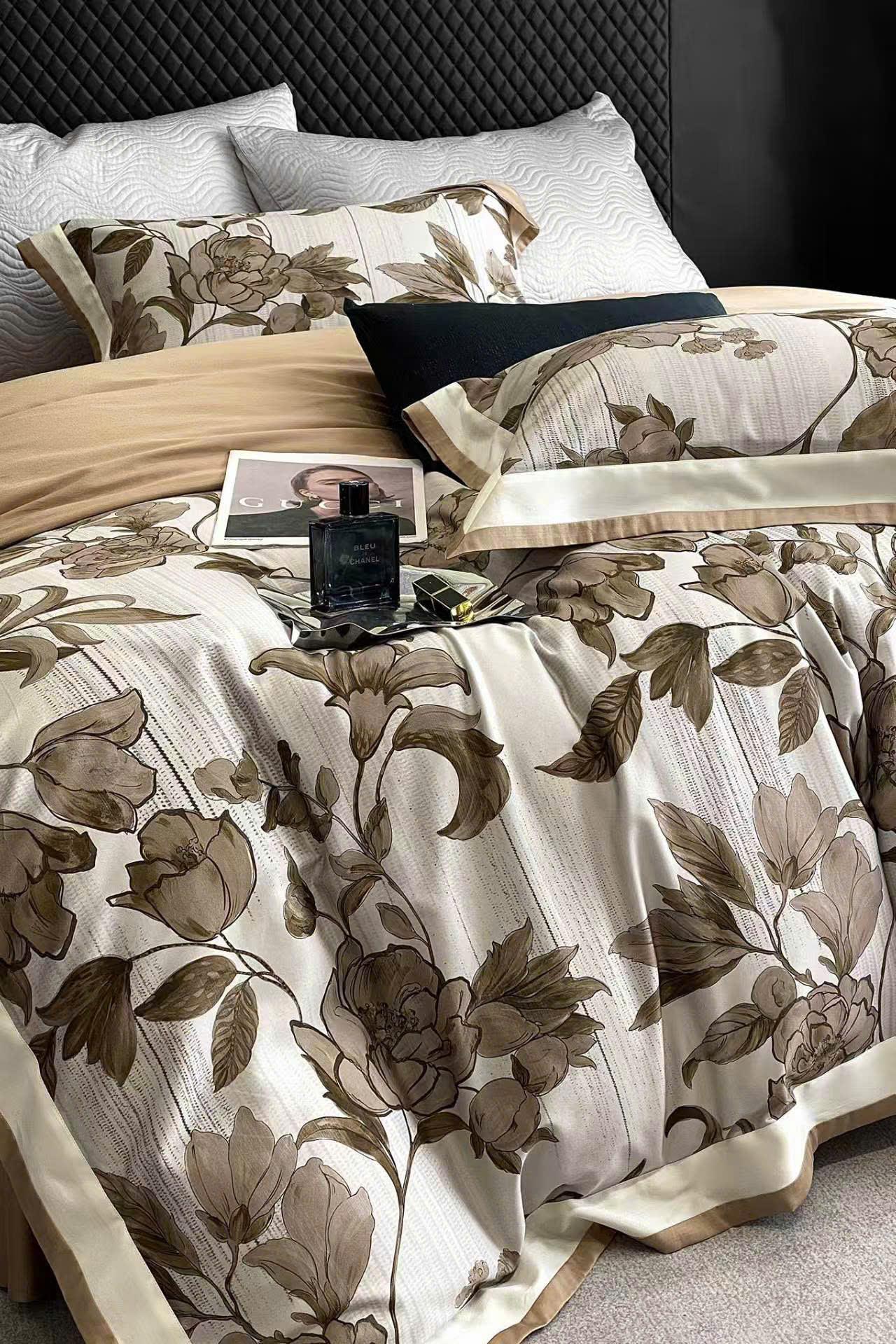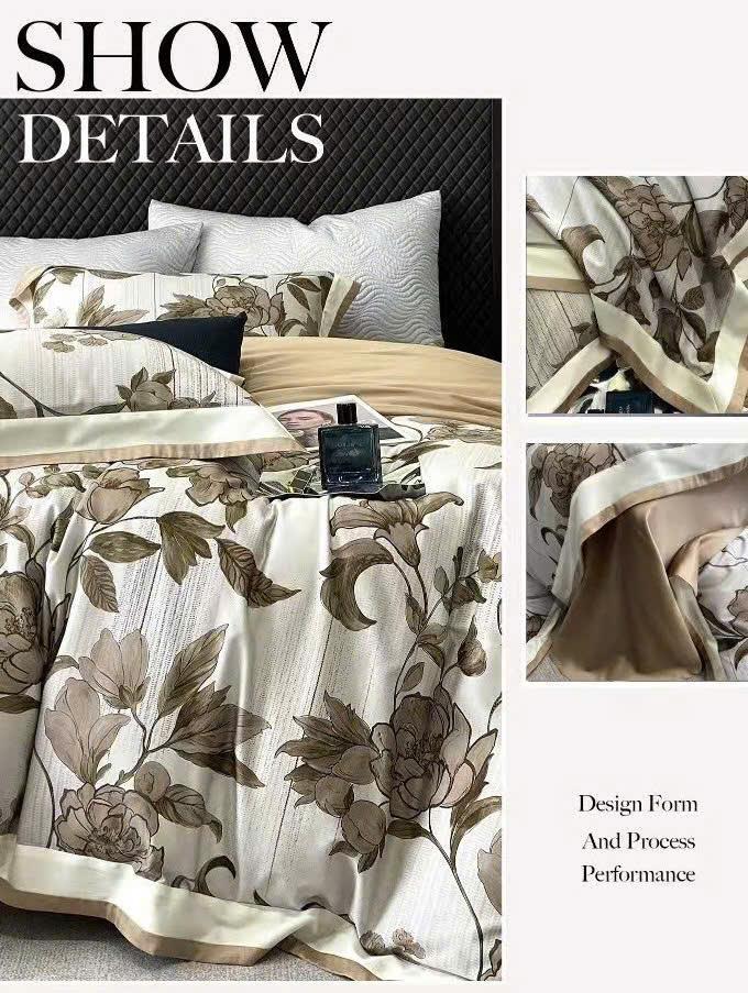 Vỏ chăn và vỏ gối in kỹ thuật số họa tiết hoa mộc tinh tế.